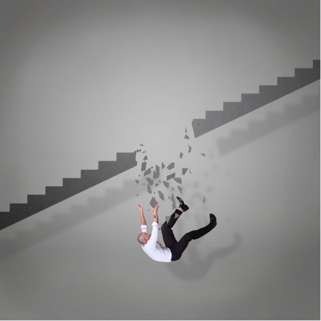 As I start up the second flight, it dawns on me that the handrail technique has a weakness: It requires me to walk straight up the stairs and absorb each step’s full height with my full weight. With more than two flights to go, it isn’t going to happen. I wearily achieve the second landing and pause for actually a bit longer than I did on the first landing. My legs trembled. I was sweating. It literally crossed my mind at this point to retreat back down and search-out another route. A rough mental calculation of time and space informed me that no alternative would work. I had to either get there from where I was or be vanquished mid-stairs in the attempt until someone located me there, alive or otherwise🥴.